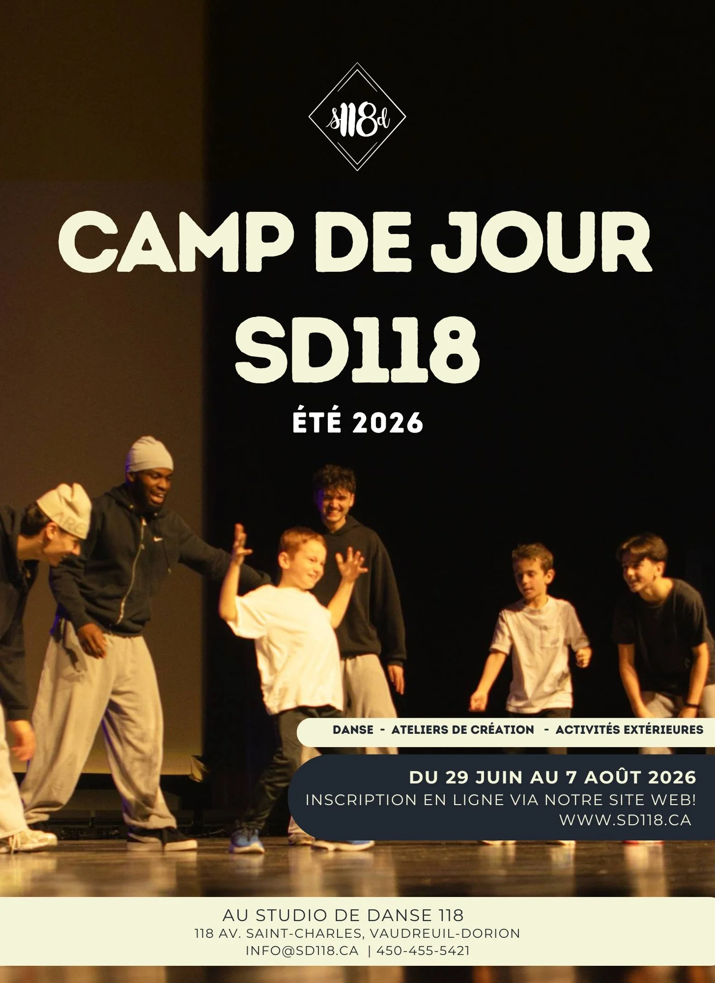 Vous cherchez une aventure estivale inoubliable pour vos enfants ? Inscrivez-les dès maintenant au Camp de Jour SD118 ! Un été rempli de créativité, danse et découvertes les attend !